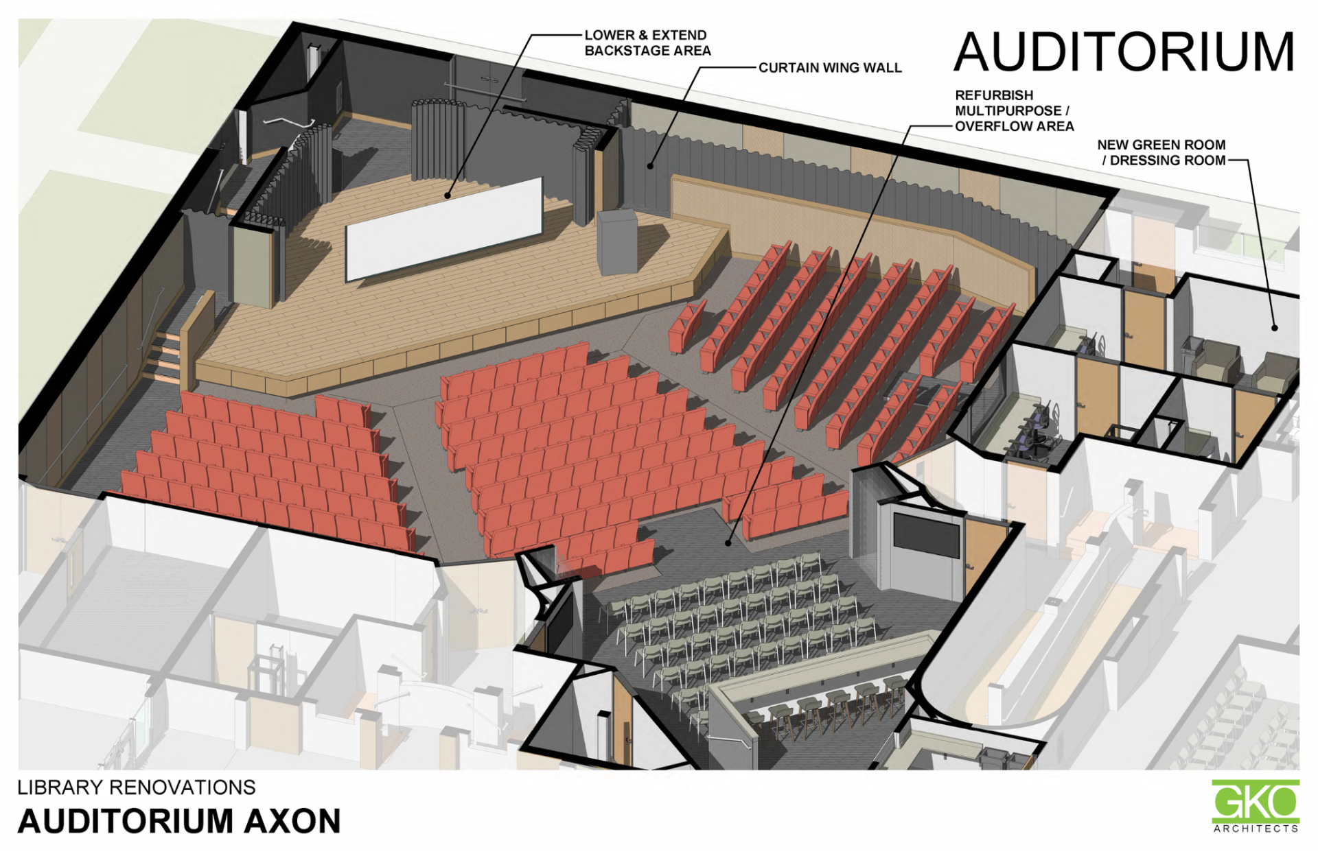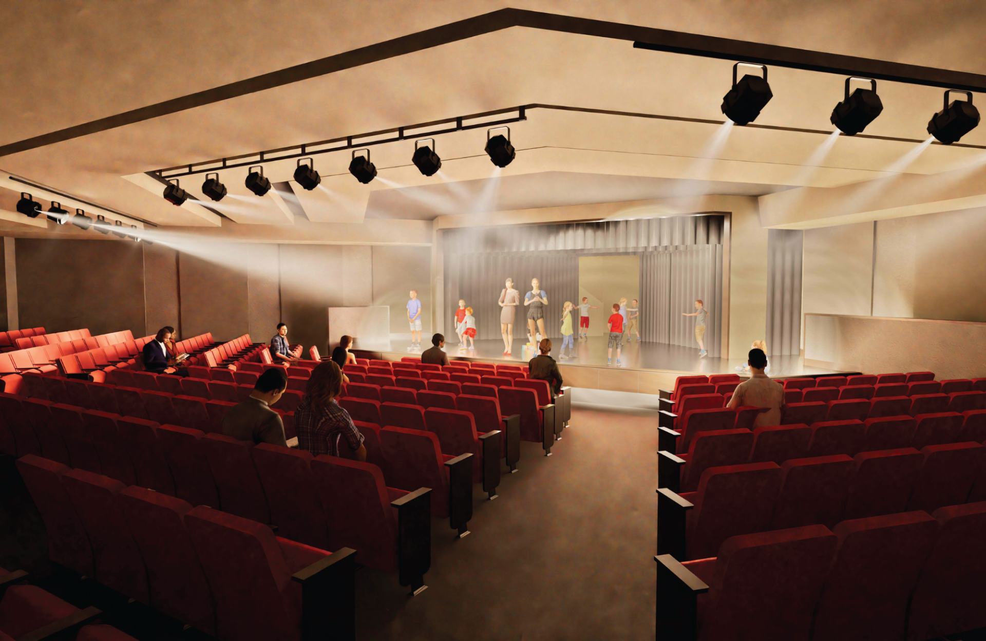 Expand the stage and seating capacity, with modern lighting and enhanced technology to support a wider range of events and programs.